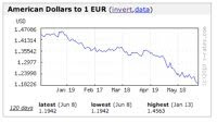 | Euro to US Dollar exchange rate We hope that our American clients will be taking advantage of the lower Euro/US Dollar exchange rate and book their 2010 barging vacations soon. This is a great time to visit Europe as your hard-earned dollars will stretch farther. MORE INFO... Posted: June 8, 2010 |